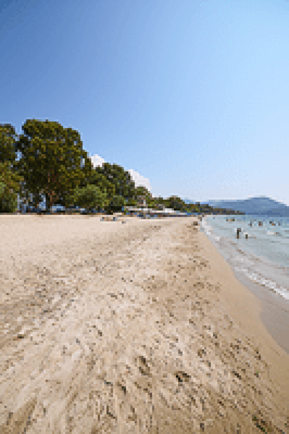 Πρόκειται για μια πολύ μεγάλη,περίπου 4 χιλιομέτρων, αμμώδη και ρηχή παραλία με καθαρά νερά. Ξεκινά από το ομώνυμο κάμπινγκ που βρίσκεται στην αρχή και καταλήγει στο Μακρυγιάλλι στο άλλο άκρο της! Κατά μήκος της παραλία θα βρείτε πολλές ταβέρνες για γεύμα και ποτό αλλά και παραθαλάσσια club για τους νέους! Επίσης σε πολλά σημεία της προσφέρεται η δυνατότητα να ενοικιάσετε ξαπλώστρες και ομπρέλες!