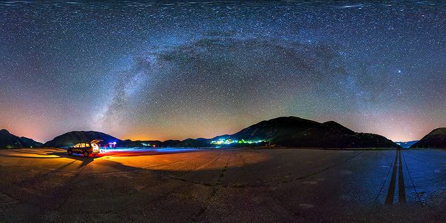 Το ελικοδρόμιο της Κεραμίτσας ήταν η επόμενη καλύτερη λύση που πρότεινε αμέσως ο Κώστας λόγω της άπλας που προσφέρει αλλά και της θέσης που κατέχει, ανάμεσα από τα επιβλητικά όρη της περιοχής, έχει την λιγότερη δυνατή φωτορύπανση που σίγουρα βοηθά στην μεγιστοποίηση του λεπτομέρειας που καταγράφεται κατά την διάρκεια της φωτογράφισης. Μόλις 10 λεπτά από Μαλούνι και ακριβώς δίπλα στην πανέμορφη Κεραμίτσα, στέκει το περίφημο ελικοδρόμιο. Κατευθείαν στήσαμε τον εξοπλισμό και ξεκινήσαμε τις λήψεις. Ο άνεμος συνέχιζε να είναι κρύος και δυνατός, αλλά σίγουρα πολύ λιγότερο από την κορυφή του Μαλουνίου. Δεν μπόρεσε να σταθεί εμπόδιο στην καταγραφή των λήψεων. Ο ουρανός συνέχιζε να είναι απίστευτα διαυγής και τα αστέρια λαμπύριζαν σαν κυριολεκτικά να ήταν δίπλα μας. Θα μπορούσε κανείς να πει χωρίς υπερβολές ότι το ελικοδρόμιο της Κεραμίτσας αποτελεί ένα υπαίθριο πλανητάριο.